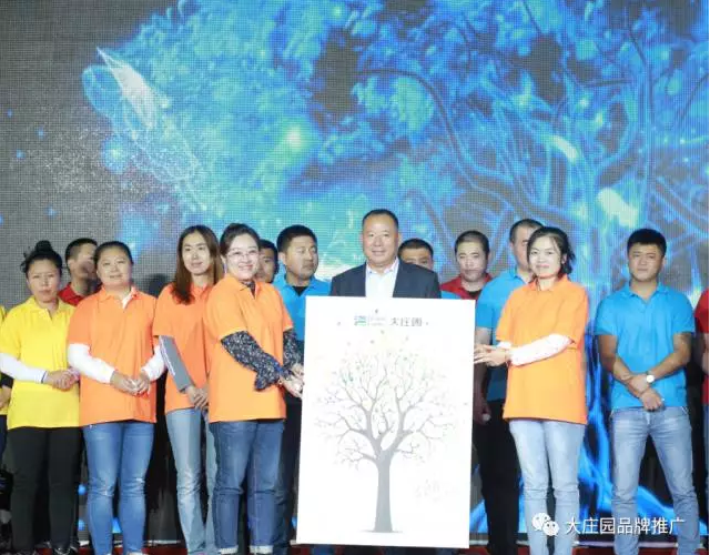 長(zhǎng)3米5的35周年生日蛋糕推至臺(tái)前,它代表莊園35年的事業(yè)步步高升,蒸蒸日上。現(xiàn)場(chǎng)700余名員工集體合唱《生日歌》,并且大莊園全體員工為董事長(zhǎng)準(zhǔn)備了一棵由每一位莊園員工的指紋組成的莊園樹。“一棵樹,一家人”代表著所有莊園人在大莊園這棵大樹下吸取養(yǎng)分,茁壯成長(zhǎng)。