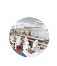 環(huán)境衛(wèi)生控制:采用班前、班中、班后清洗消毒制度。公司擁有進口泡沫清洗系統(tǒng),對設備、設施、工器具進行雙重清洗消毒;班后采用大型臭氧機,對生產環(huán)境空氣進行物理消毒,每天由化驗室根據(jù)檢驗計劃進行檢測,確保環(huán)境衛(wèi)生合格。