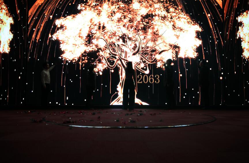 晚會(huì)的最后,以陳姣姣為首的集團(tuán)五名領(lǐng)導(dǎo)走上臺(tái),代表董事長開啟了“希望之樹”。那棵象征著大莊園的“希望之樹”從1982年開始成長,一直長到了2019、2029、2059、2099……