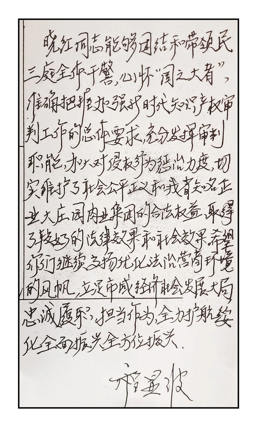 “我們懷著誠摯和激動的心情,向綏化市中級人民法院民三庭的各位法官贈送錦旗并送上《感謝信》,真誠表達(dá)我公司對綏化市中級人民法院民三庭各位法官公正廉明、認(rèn)真負(fù)責(zé)的敬業(yè)精神和工作態(tài)度表示衷心的感謝和崇高的敬意!”近日,綏化市中級人民法院院長收到一封發(fā)自大莊園肉業(yè)集團股份有限公司的感謝信,信件字里行間洋溢著企業(yè)對法院的感謝之情。